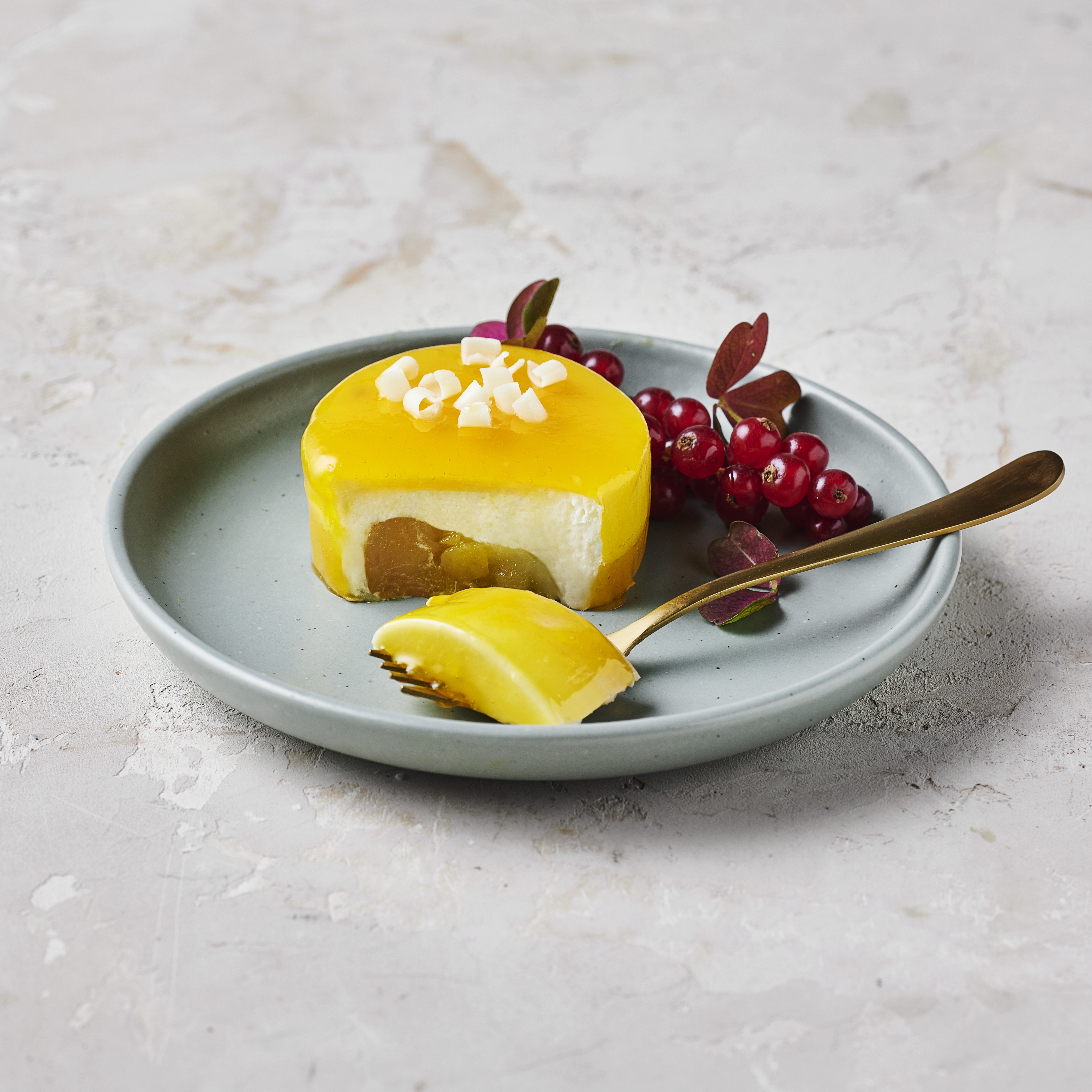 mousse med intens frugtsmag. Den glacerede